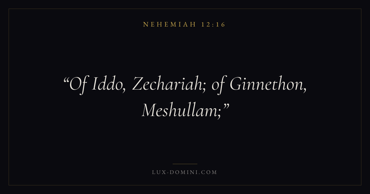 Of Iddo, Zechariah; of Ginnethon, Meshullam;