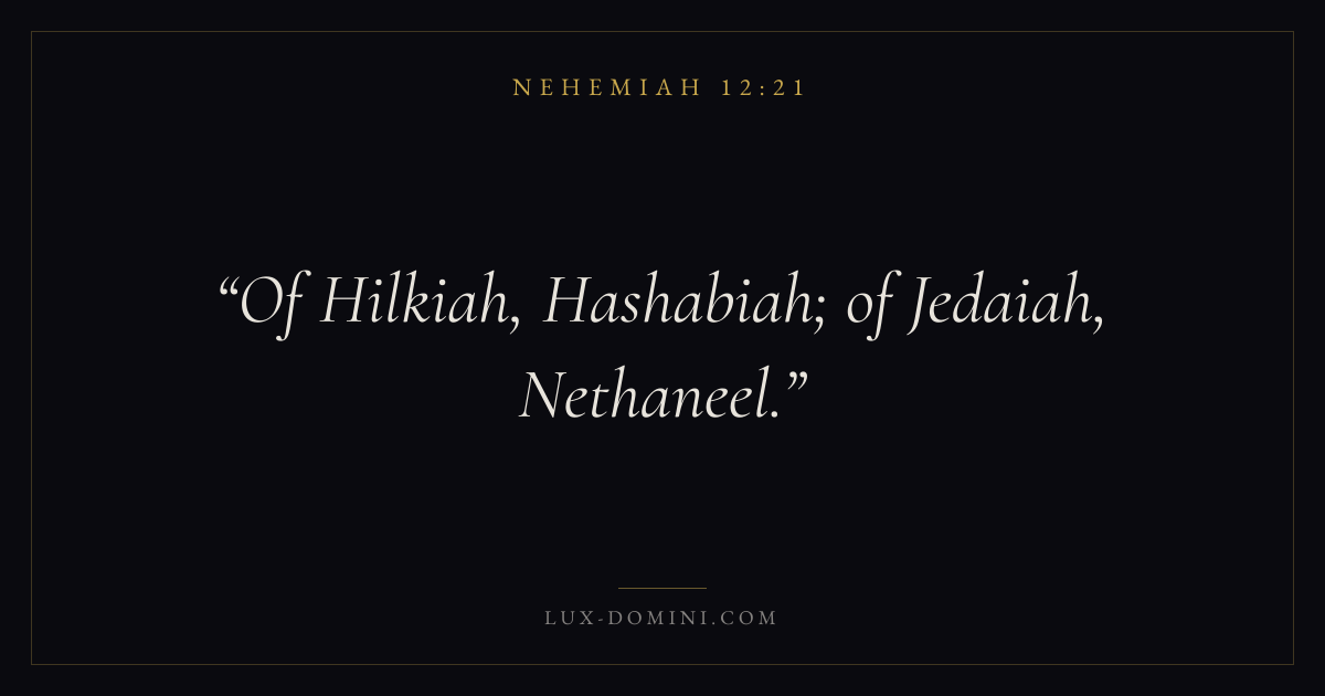 Of Hilkiah, Hashabiah; of Jedaiah, Nethaneel.
