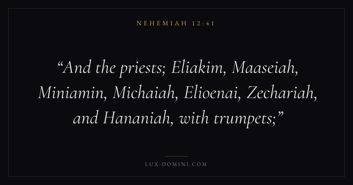 And the priests; Eliakim, Maaseiah, Miniamin, Michaiah, Elioenai, Zechariah, and Hananiah, with trumpets;