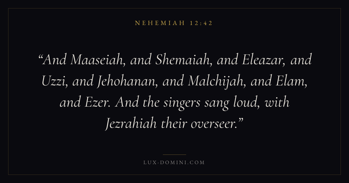 And Maaseiah, and Shemaiah, and Eleazar, and Uzzi, and Jehohanan, and Malchijah, and Elam, and Ezer. And the singers sang loud, with Jezrahiah their overseer.