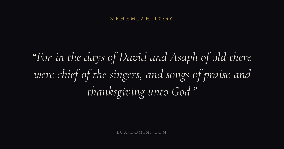 For in the days of David and Asaph of old there were chief of the singers, and songs of praise and thanksgiving unto God.