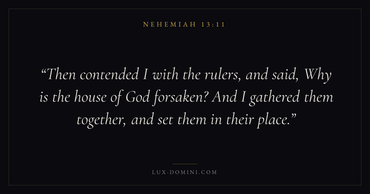 Then contended I with the rulers, and said, Why is the house of God forsaken? And I gathered them together, and set them in their place.