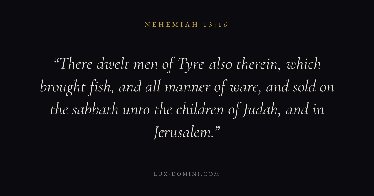 There dwelt men of Tyre also therein, which brought fish, and all manner of ware, and sold on the sabbath unto the children of Judah, and in Jerusalem.