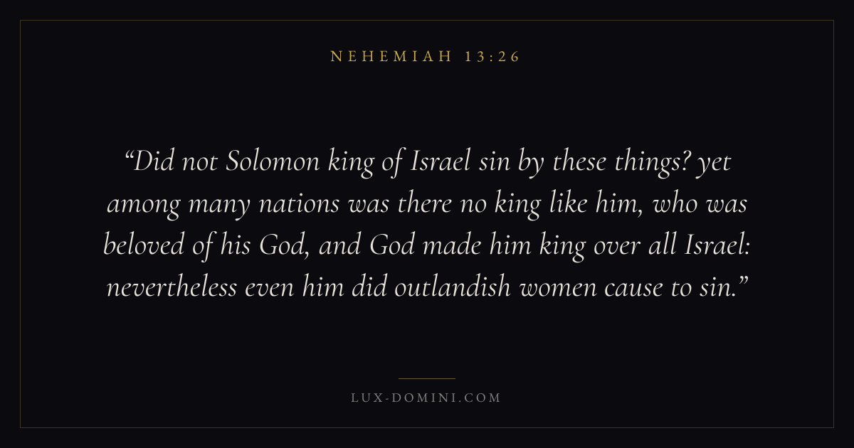 Did not Solomon king of Israel sin by these things? yet among many nations was there no king like him, who was beloved of his God, and God made him king over all Israel: nevertheless even him did outlandish women cause to sin.