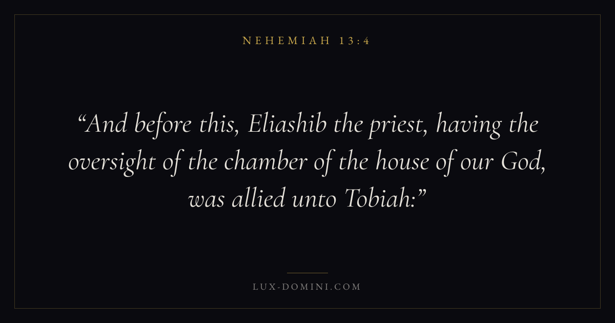And before this, Eliashib the priest, having the oversight of the chamber of the house of our God, was allied unto Tobiah: