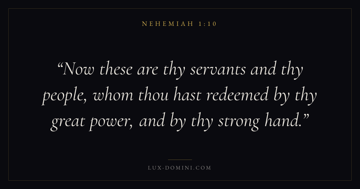 Now these are thy servants and thy people, whom thou hast redeemed by thy great power, and by thy strong hand.