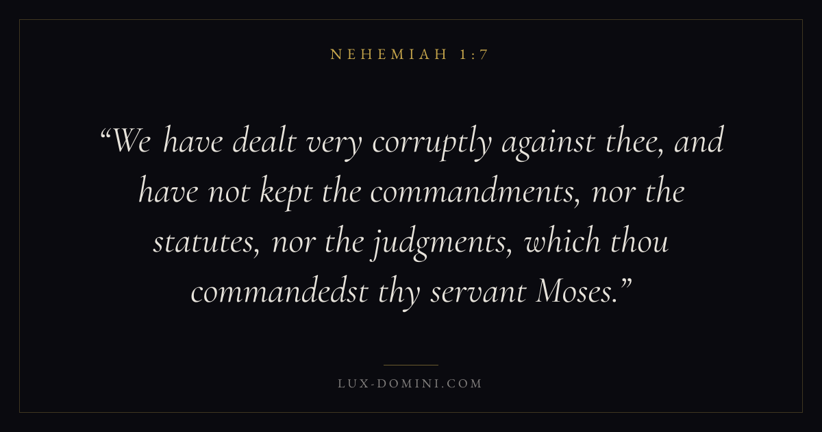 We have dealt very corruptly against thee, and have not kept the commandments, nor the statutes, nor the judgments, which thou commandedst thy servant Moses.