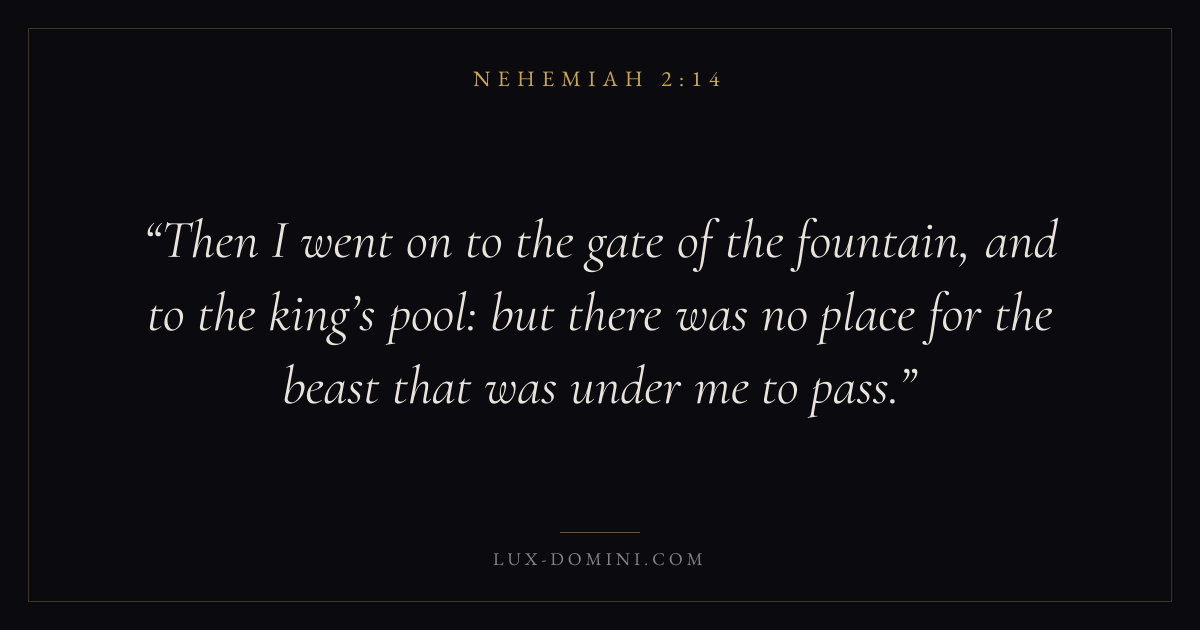 Then I went on to the gate of the fountain, and to the king’s pool: but there was no place for the beast that was under me to pass.