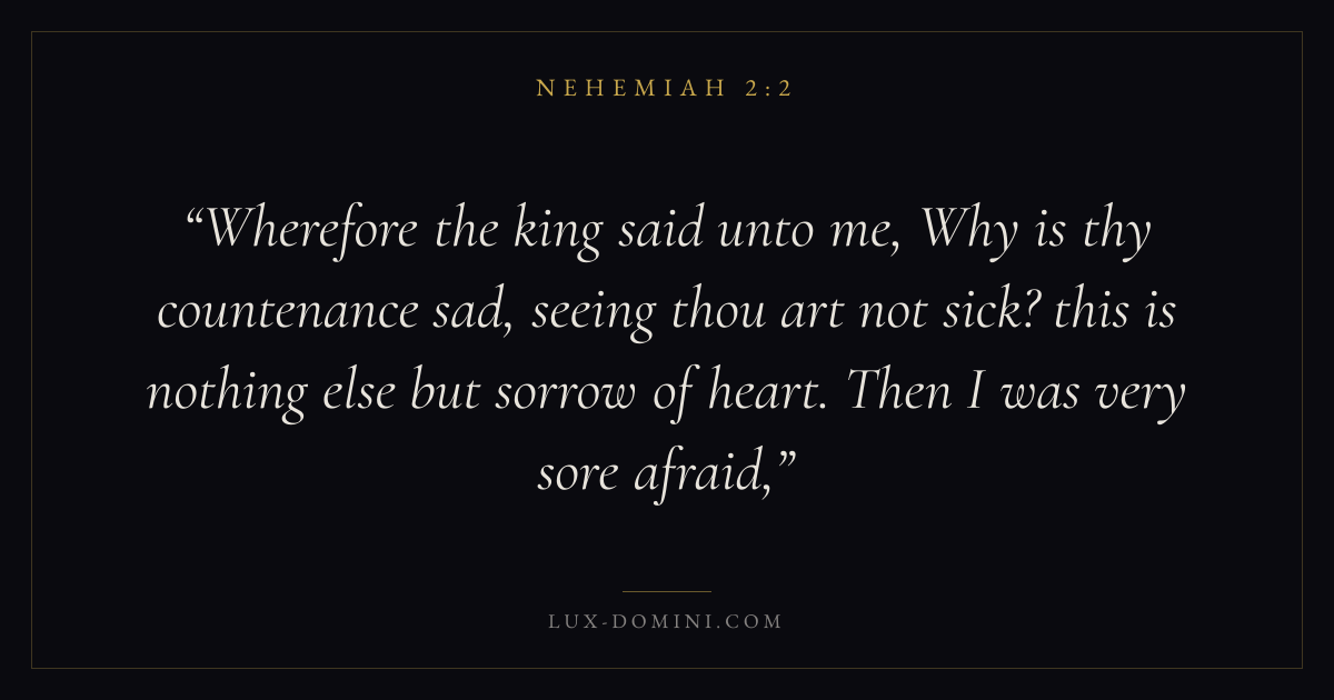 Wherefore the king said unto me, Why is thy countenance sad, seeing thou art not sick? this is nothing else but sorrow of heart. Then I was very sore afraid,