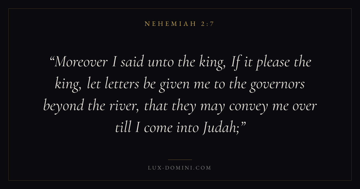 Moreover I said unto the king, If it please the king, let letters be given me to the governors beyond the river, that they may convey me over till I come into Judah;