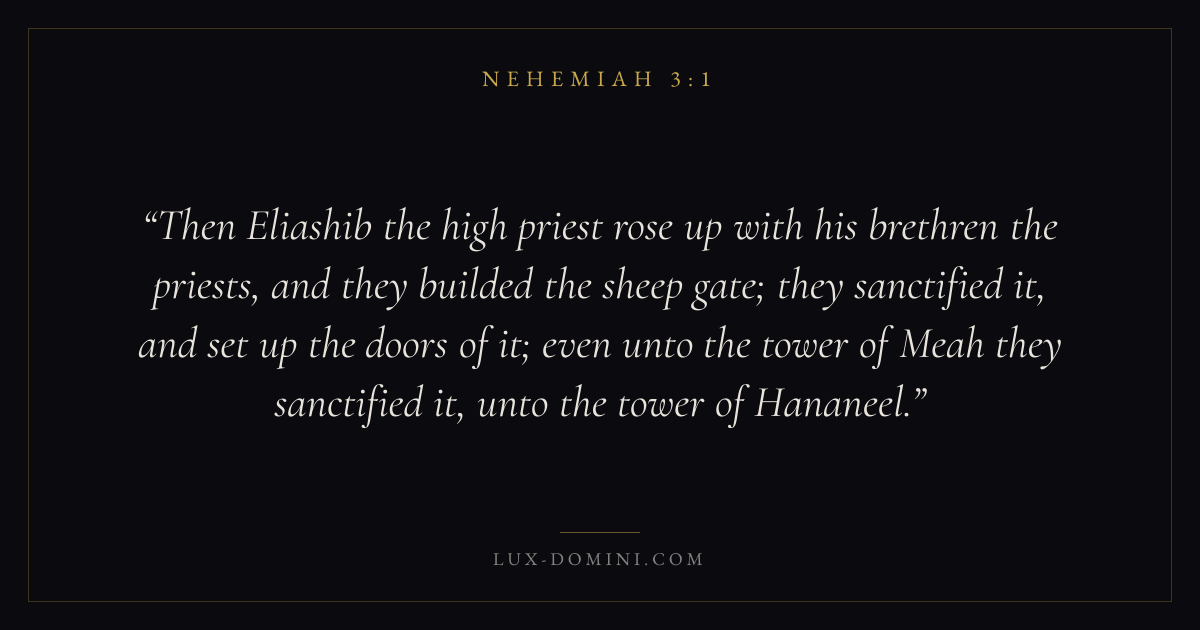 Then Eliashib the high priest rose up with his brethren the priests, and they builded the sheep gate; they sanctified it, and set up the doors of it; even unto the tower of Meah they sanctified it, unto the tower of Hananeel.