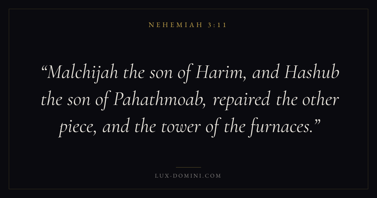 Malchijah the son of Harim, and Hashub the son of Pahathmoab, repaired the other piece, and the tower of the furnaces.