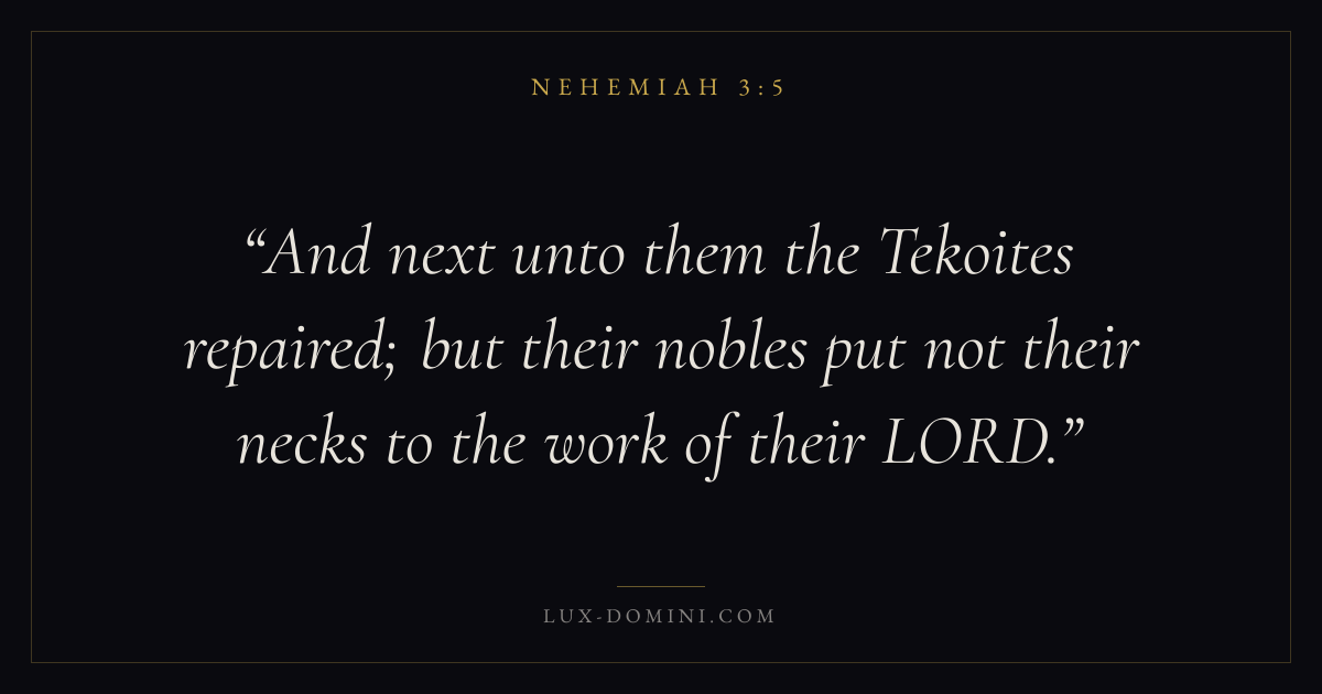 And next unto them the Tekoites repaired; but their nobles put not their necks to the work of their LORD.