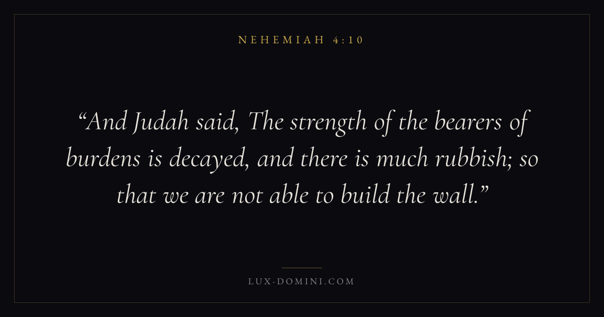 And Judah said, The strength of the bearers of burdens is decayed, and there is much rubbish; so that we are not able to build the wall.