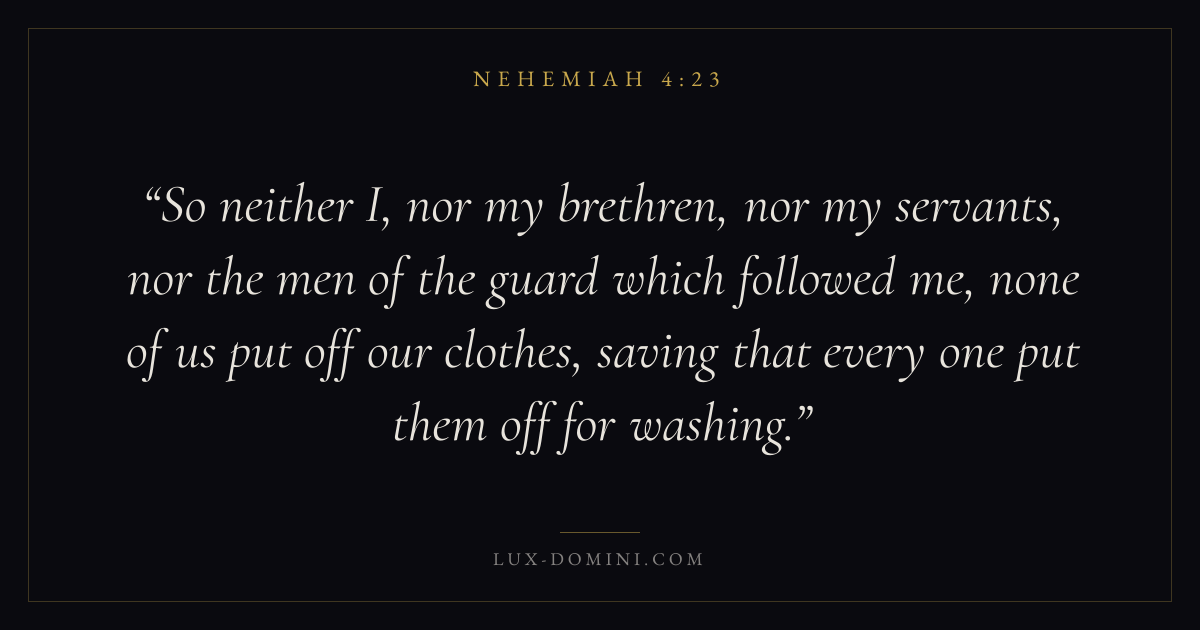 So neither I, nor my brethren, nor my servants, nor the men of the guard which followed me, none of us put off our clothes, saving that every one put them off for washing.