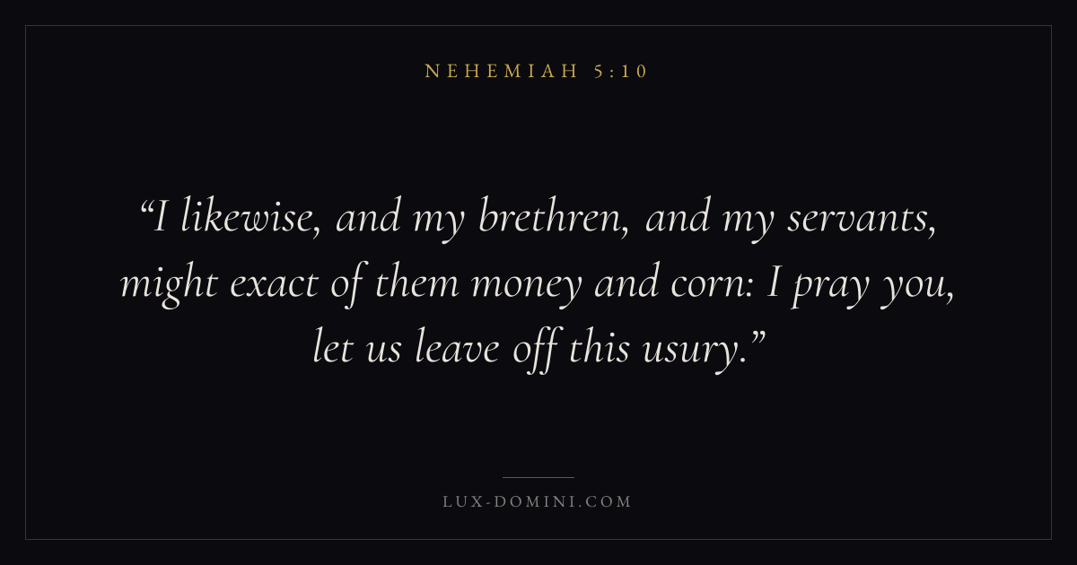 I likewise, and my brethren, and my servants, might exact of them money and corn: I pray you, let us leave off this usury.