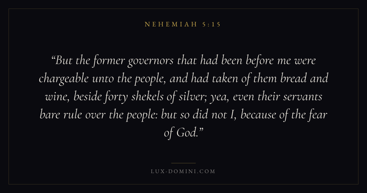 But the former governors that had been before me were chargeable unto the people, and had taken of them bread and wine, beside forty shekels of silver; yea, even their servants bare rule over the people: but so did not I, because of the fear of God.