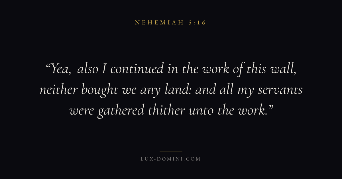 Yea, also I continued in the work of this wall, neither bought we any land: and all my servants were gathered thither unto the work.