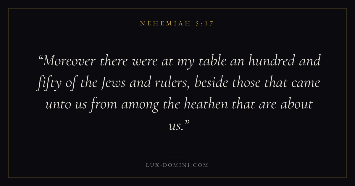 Moreover there were at my table an hundred and fifty of the Jews and rulers, beside those that came unto us from among the heathen that are about us.