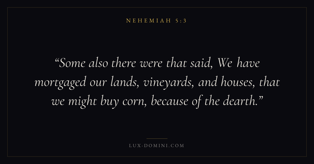 Some also there were that said, We have mortgaged our lands, vineyards, and houses, that we might buy corn, because of the dearth.