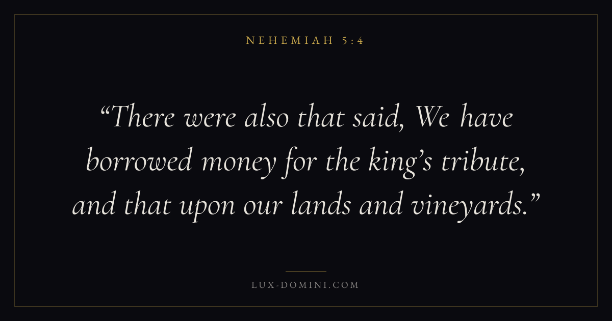 There were also that said, We have borrowed money for the king’s tribute, and that upon our lands and vineyards.