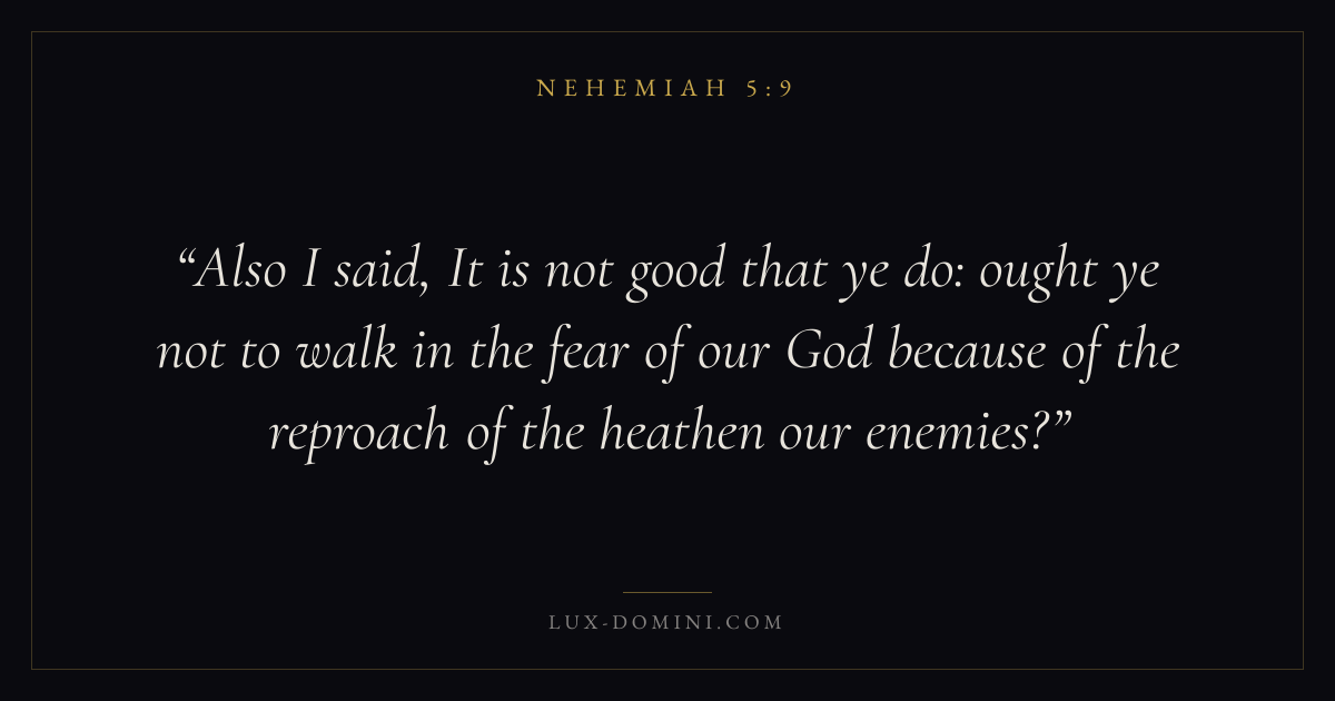 Also I said, It is not good that ye do: ought ye not to walk in the fear of our God because of the reproach of the heathen our enemies?