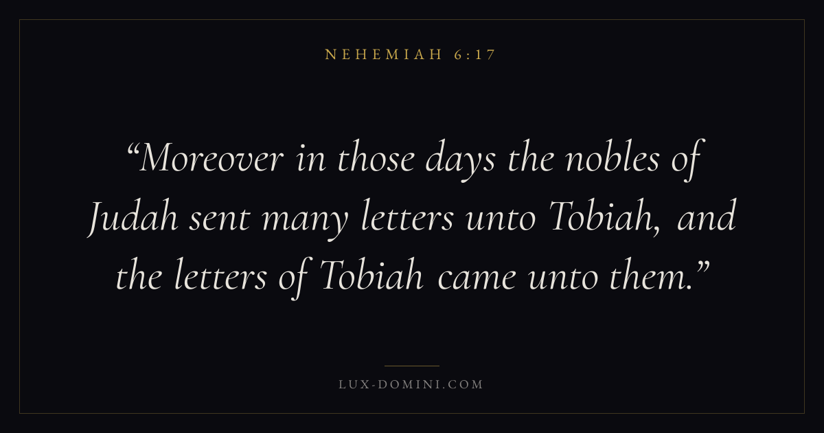 Moreover in those days the nobles of Judah sent many letters unto Tobiah, and the letters of Tobiah came unto them.
