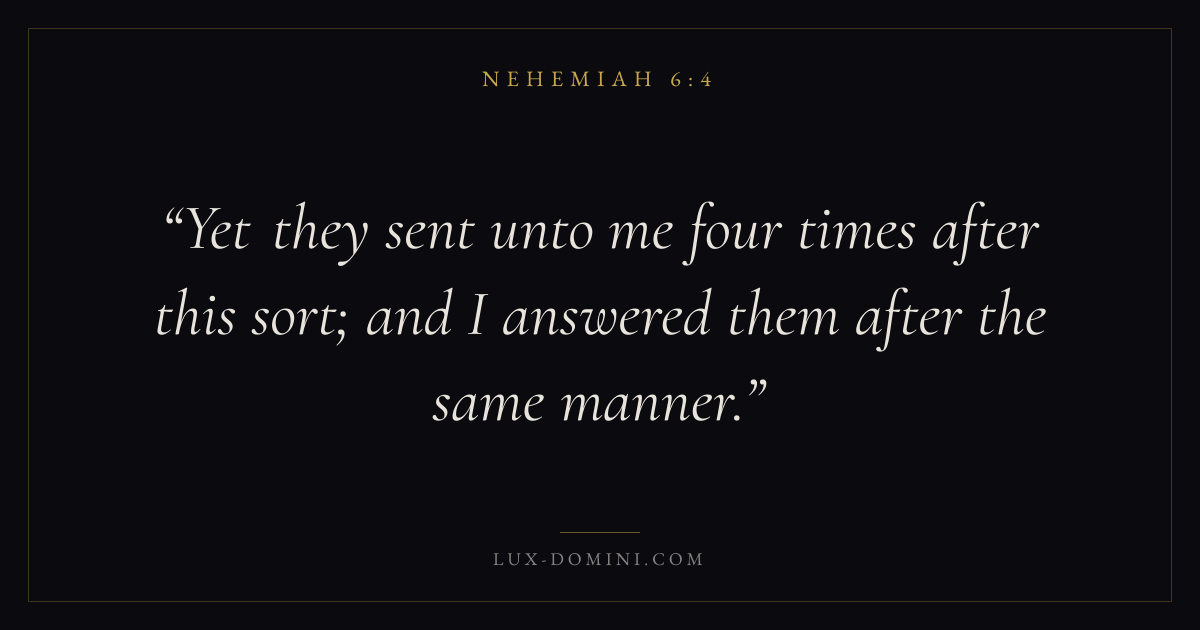 Yet they sent unto me four times after this sort; and I answered them after the same manner.