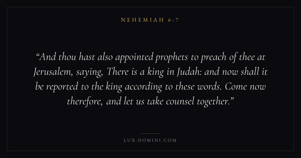 And thou hast also appointed prophets to preach of thee at Jerusalem, saying, There is a king in Judah: and now shall it be reported to the king according to these words. Come now therefore, and let us take counsel together.