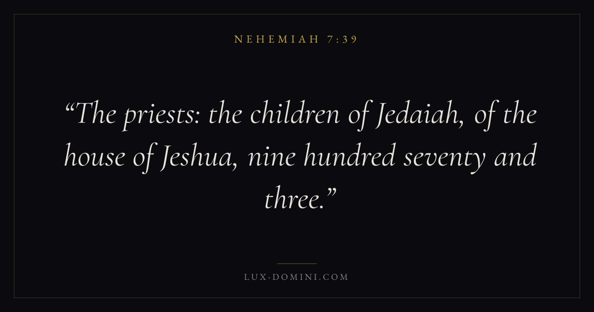 The priests: the children of Jedaiah, of the house of Jeshua, nine hundred seventy and three.