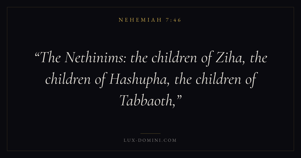 The Nethinims: the children of Ziha, the children of Hashupha, the children of Tabbaoth,