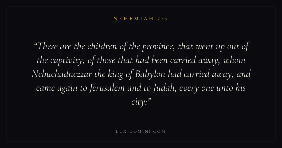 These are the children of the province, that went up out of the captivity, of those that had been carried away, whom Nebuchadnezzar the king of Babylon had carried away, and came again to Jerusalem and to Judah, every one unto his city;
