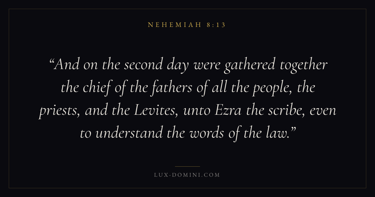 And on the second day were gathered together the chief of the fathers of all the people, the priests, and the Levites, unto Ezra the scribe, even to understand the words of the law.