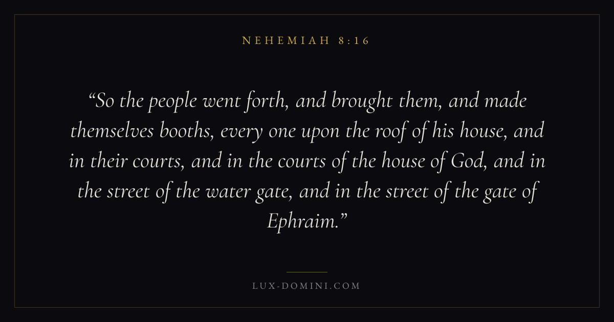 So the people went forth, and brought them, and made themselves booths, every one upon the roof of his house, and in their courts, and in the courts of the house of God, and in the street of the water gate, and in the street of the gate of Ephraim.