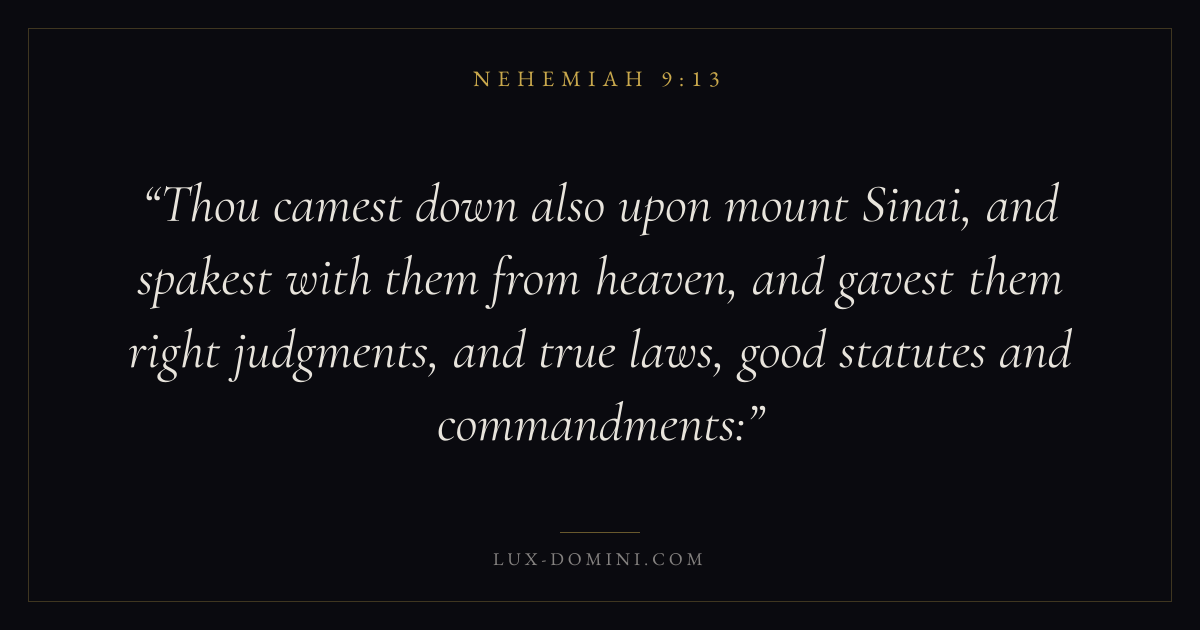 Thou camest down also upon mount Sinai, and spakest with them from heaven, and gavest them right judgments, and true laws, good statutes and commandments: