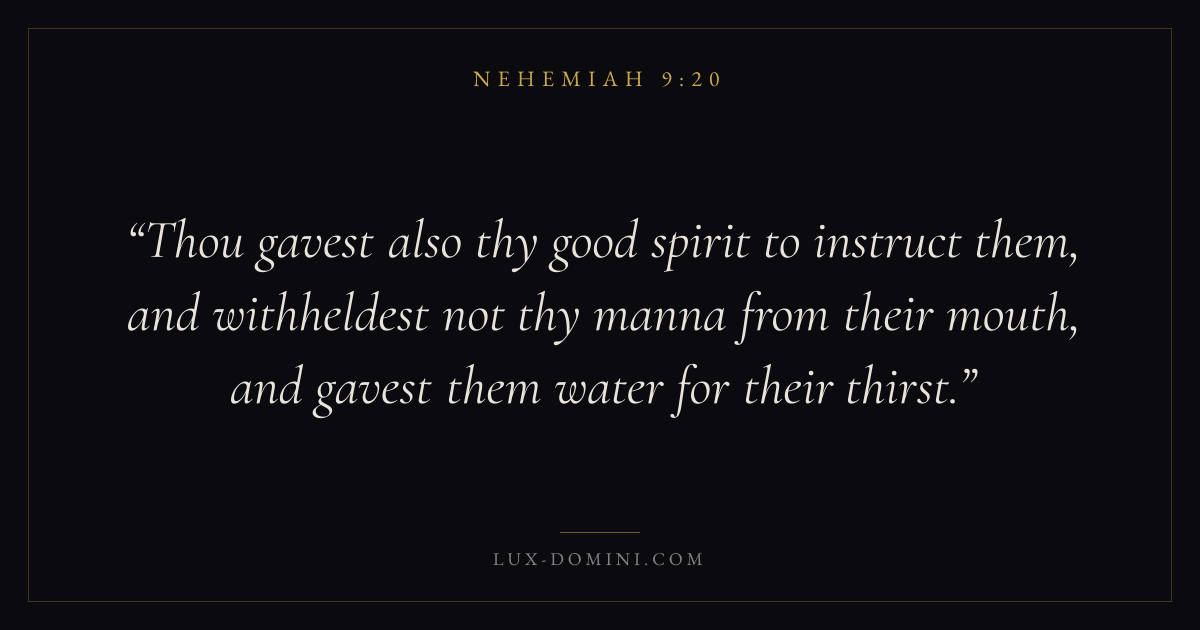 Thou gavest also thy good spirit to instruct them, and withheldest not thy manna from their mouth, and gavest them water for their thirst.