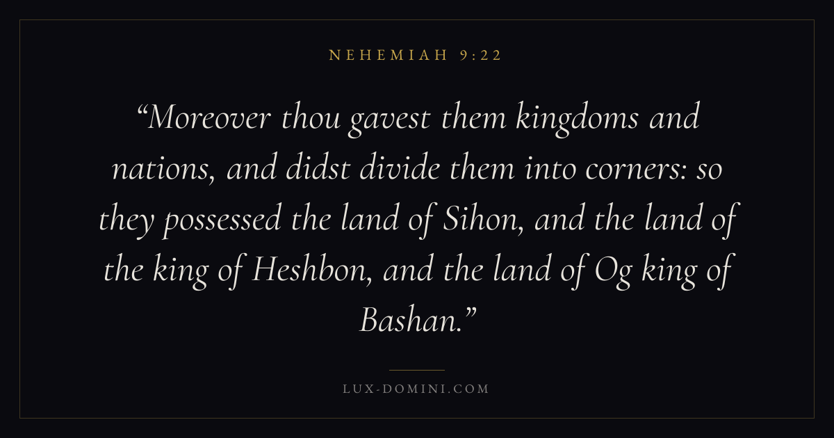 Moreover thou gavest them kingdoms and nations, and didst divide them into corners: so they possessed the land of Sihon, and the land of the king of Heshbon, and the land of Og king of Bashan.