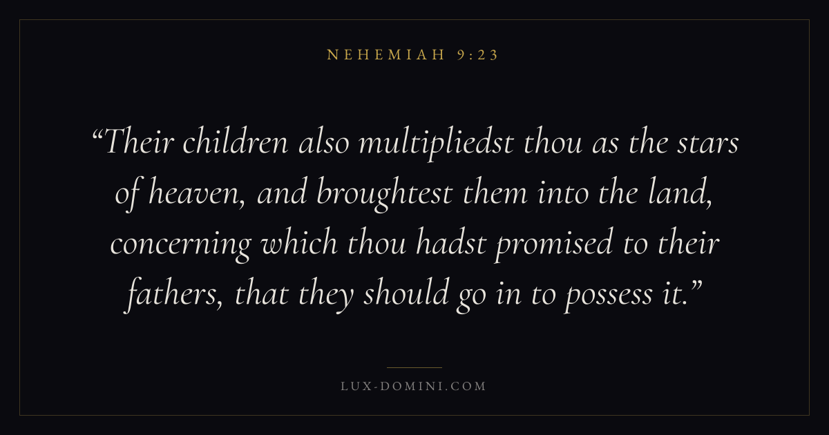 Their children also multipliedst thou as the stars of heaven, and broughtest them into the land, concerning which thou hadst promised to their fathers, that they should go in to possess it.