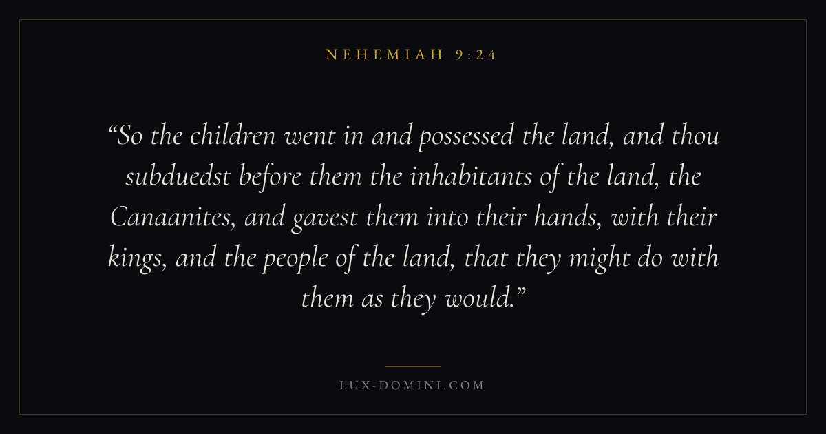 So the children went in and possessed the land, and thou subduedst before them the inhabitants of the land, the Canaanites, and gavest them into their hands, with their kings, and the people of the land, that they might do with them as they would.