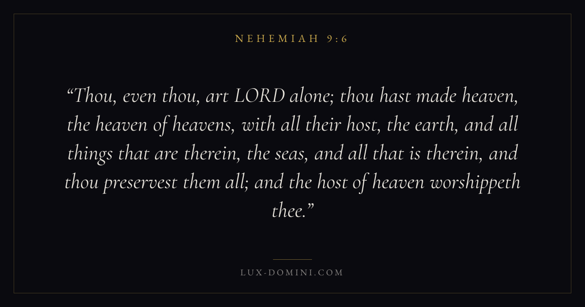 Thou, even thou, art LORD alone; thou hast made heaven, the heaven of heavens, with all their host, the earth, and all things that are therein, the seas, and all that is therein, and thou preservest them all; and the host of heaven worshippeth thee.
