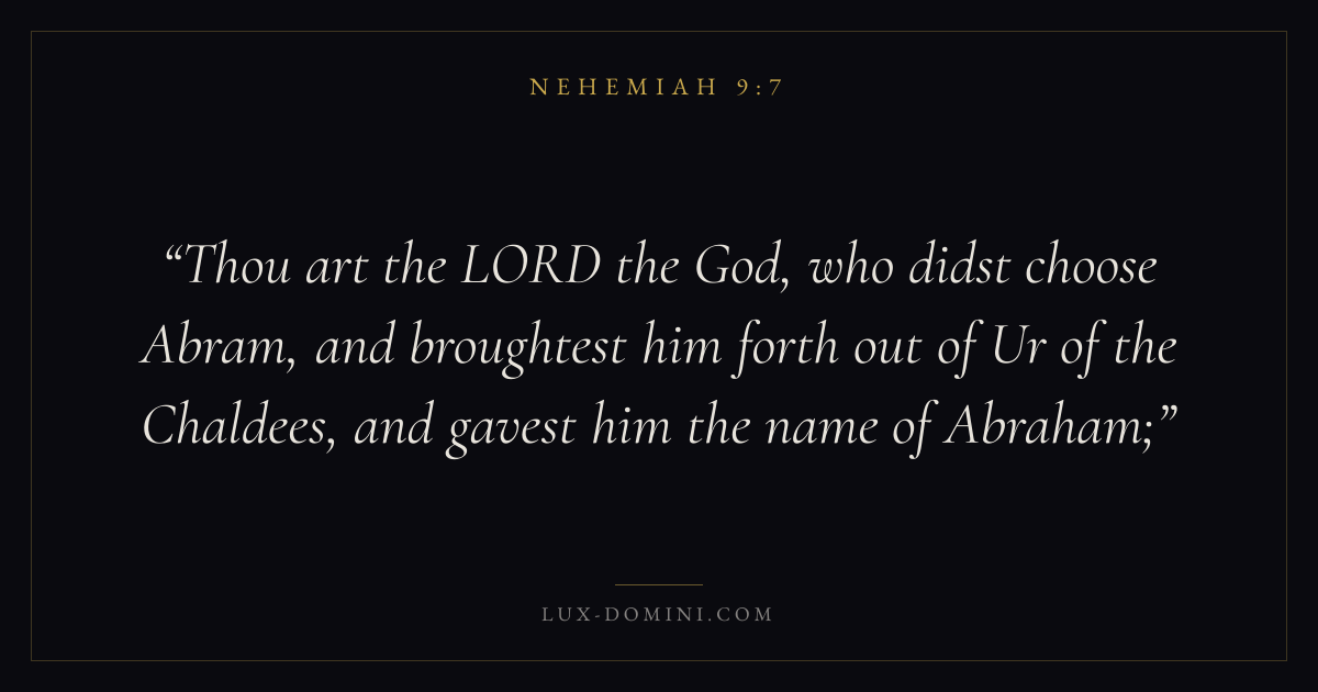 Thou art the LORD the God, who didst choose Abram, and broughtest him forth out of Ur of the Chaldees, and gavest him the name of Abraham;