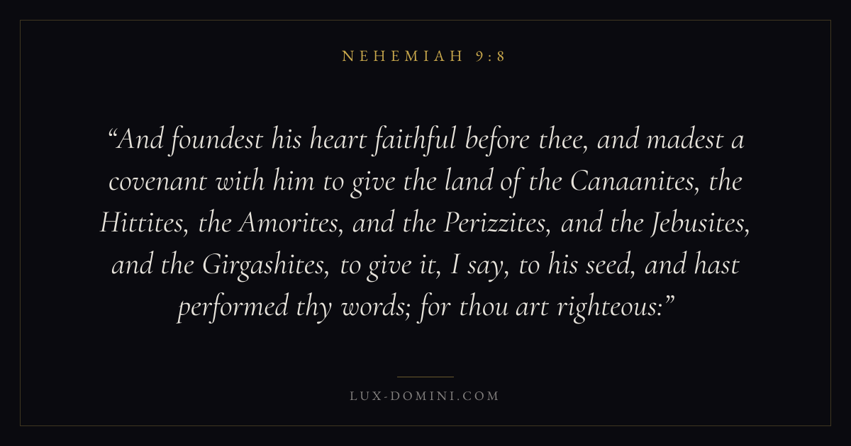 And foundest his heart faithful before thee, and madest a covenant with him to give the land of the Canaanites, the Hittites, the Amorites, and the Perizzites, and the Jebusites, and the Girgashites, to give it, I say, to his seed, and hast performed thy words; for thou art righteous: