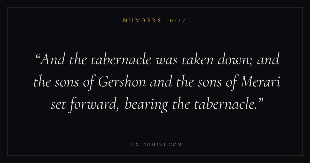 And the tabernacle was taken down; and the sons of Gershon and the sons of Merari set forward, bearing the tabernacle.
