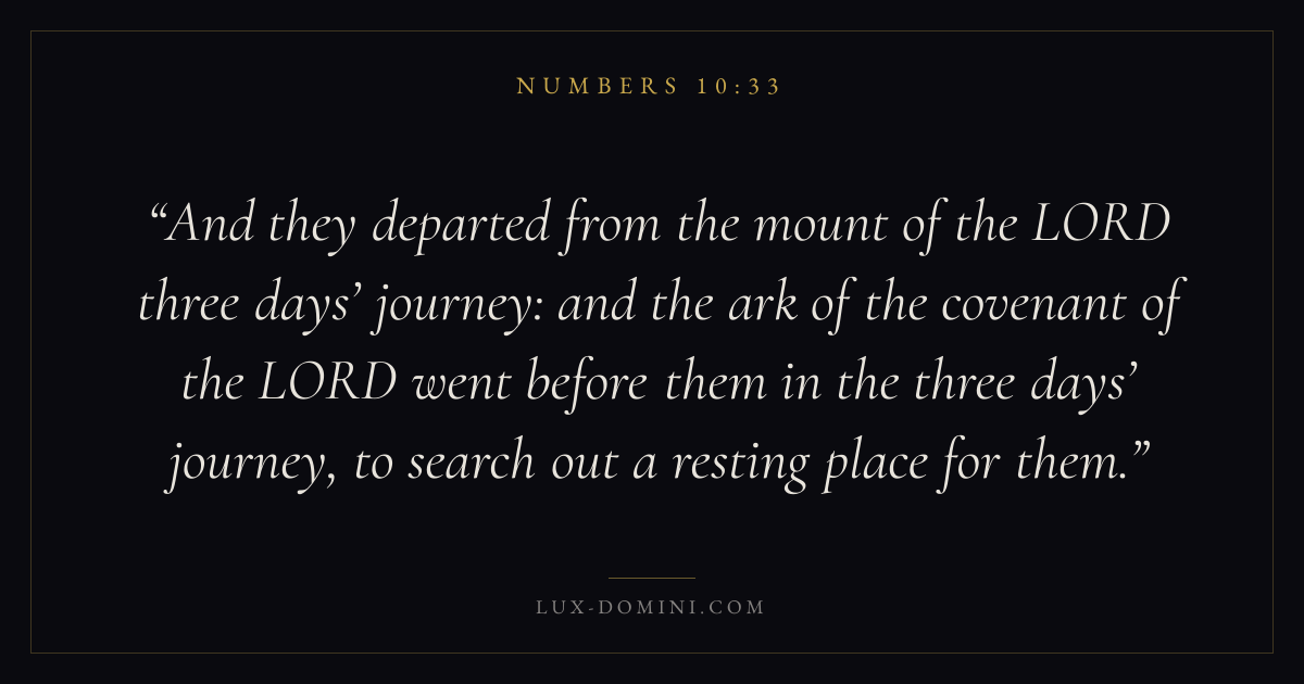 And they departed from the mount of the LORD three days’ journey: and the ark of the covenant of the LORD went before them in the three days’ journey, to search out a resting place for them.