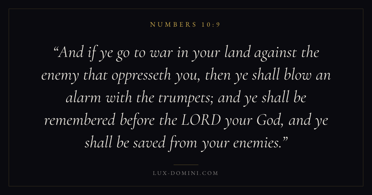 And if ye go to war in your land against the enemy that oppresseth you, then ye shall blow an alarm with the trumpets; and ye shall be remembered before the LORD your God, and ye shall be saved from your enemies.