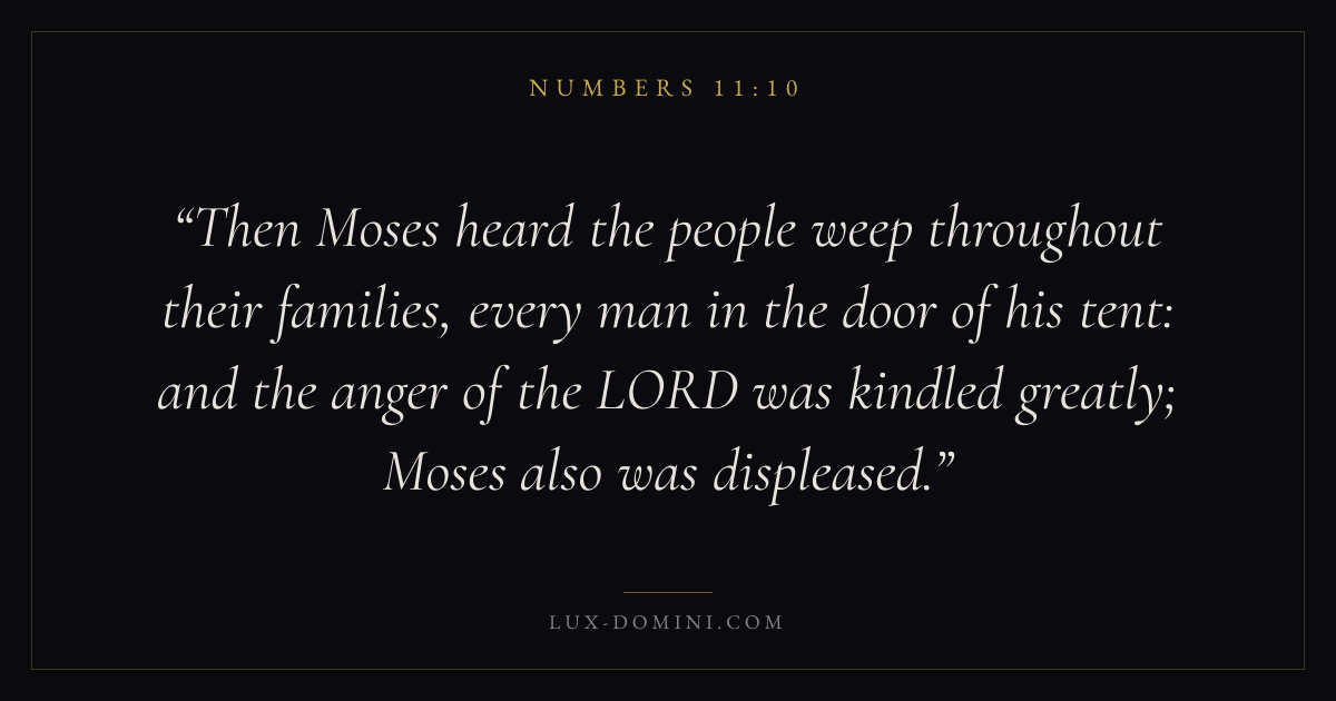 Then Moses heard the people weep throughout their families, every man in the door of his tent: and the anger of the LORD was kindled greatly; Moses also was displeased.