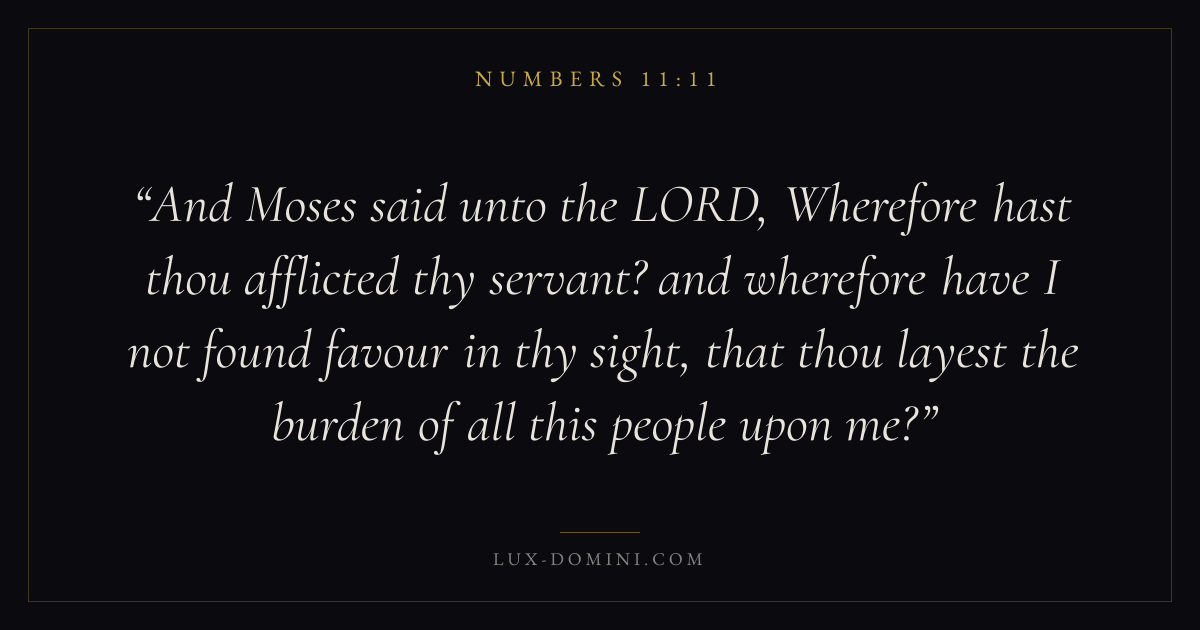 And Moses said unto the LORD, Wherefore hast thou afflicted thy servant? and wherefore have I not found favour in thy sight, that thou layest the burden of all this people upon me?