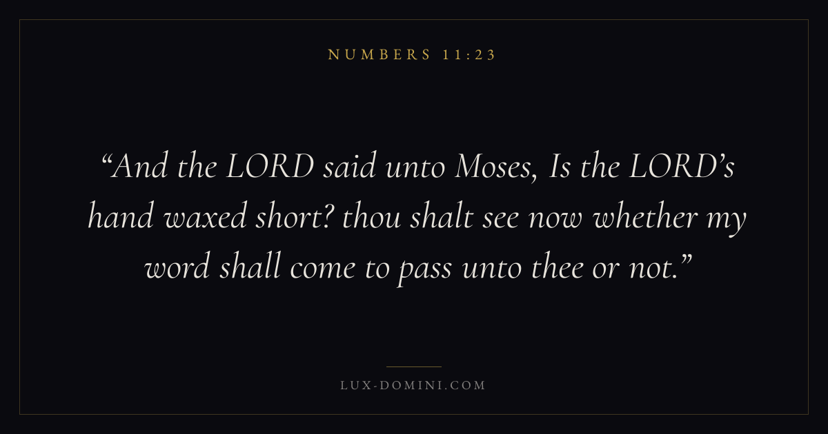And the LORD said unto Moses, Is the LORD’s hand waxed short? thou shalt see now whether my word shall come to pass unto thee or not.