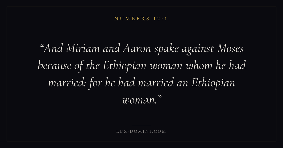 And Miriam and Aaron spake against Moses because of the Ethiopian woman whom he had married: for he had married an Ethiopian woman.