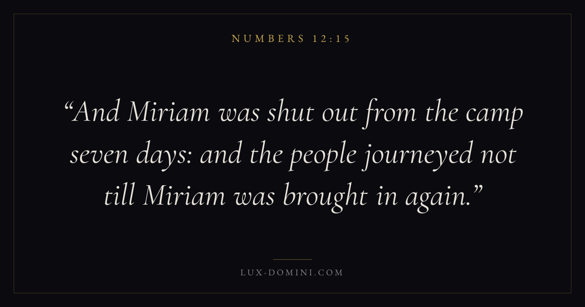And Miriam was shut out from the camp seven days: and the people journeyed not till Miriam was brought in again.